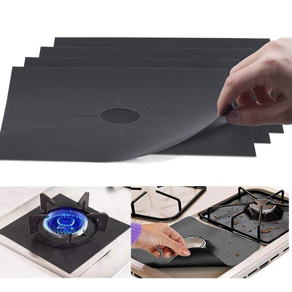 O Protetor de Fogão é ideal para proteger o seu fogão de resíduos que podem sujá-lo ou danificá-lo, como óleo de fritura, por exemplo, que lambuza, acumula e dificulta a limpeza. O protetor vem com 4 peças para 4 bocas em um tamanho padrão que se encaixa em qualquer fogão, você também pode cortá-lo caso queira e fazer o tamanho que preferir. Material de alta qualidade, feito com pano de fibra de vidro com revestimento em teflon, antiaderente, fácil de limpar e remover gordura, sujeira e poeira quando lavado com água e sabão ou na lavadora de louças, foi projetado para usar diversas vezes.